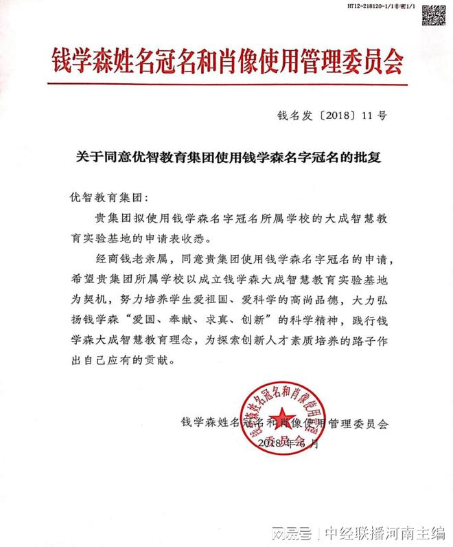 2018年,钱学森的儿子——钱永刚教授,亲自到校考察,正式授予优智教育集团“钱学森大成智慧教育基地”及钱学森姓名和肖像使用冠名权。