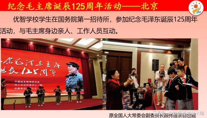 2018年12月,钱学森班的学生受邀前往北京国务院参加纪念毛泽东诞辰125周年活动,与毛主席身边的亲人和工作人员亲切互动。(原全国人大副委员长顾秀莲同志还亲自给孩子出题并与“钱学森班”师生合影留念)